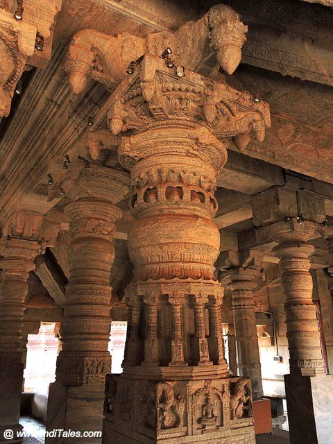 The Tribhuvana Chudamani Basadi is the largest of the temples here. It also possesses the most beautiful sculptural workmanship among the Jain temples of Karnataka. Known also as the Thousand Pillar Temple, this massive stone structure was built around 1430. A two-and-a-half-meter tall statue of Chandranatha Tirthankara stands at its center. This three-story stone edifice is cited as a prime example of Jain architecture. The open front hall (Mukhamandapa) of this temple is incredibly beautiful. Its pillars display the peak possibilities of granite carving; a single pillar alone could be considered a great work of art. I told my friends that if a single pillar from this temple existed in some European countries, they would declare it a national monument and showcase it as a major event. Queen Nagaladevi, the wife of King Bhairavaraja, created the massive fifty feet tall monolithic flagstaff that stands in front of this temple. An inscription about her is found on it. The pillars (Stambhas) in front of Jain temples are great marvels; atop these monolithic pillars, there is usually a Yaksha or Yakshi, with a guardian deity sitting at the base. Among the Yakshis, Kushmandini and Padmavati appear repeatedly.